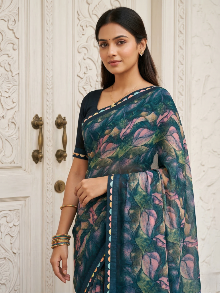 At Parvanya Fashion Hub, We Are Passionate About Redefining Elegance Through Our Exclusive Range Of Georgette Sarees. With A Deep-rooted Commitment To Quality And Customer Satisfaction, We Specialize In Floral Print Georgette Sarees And Georgette Digital Print Sarees That Blend Tradition With Modern Aesthetics.