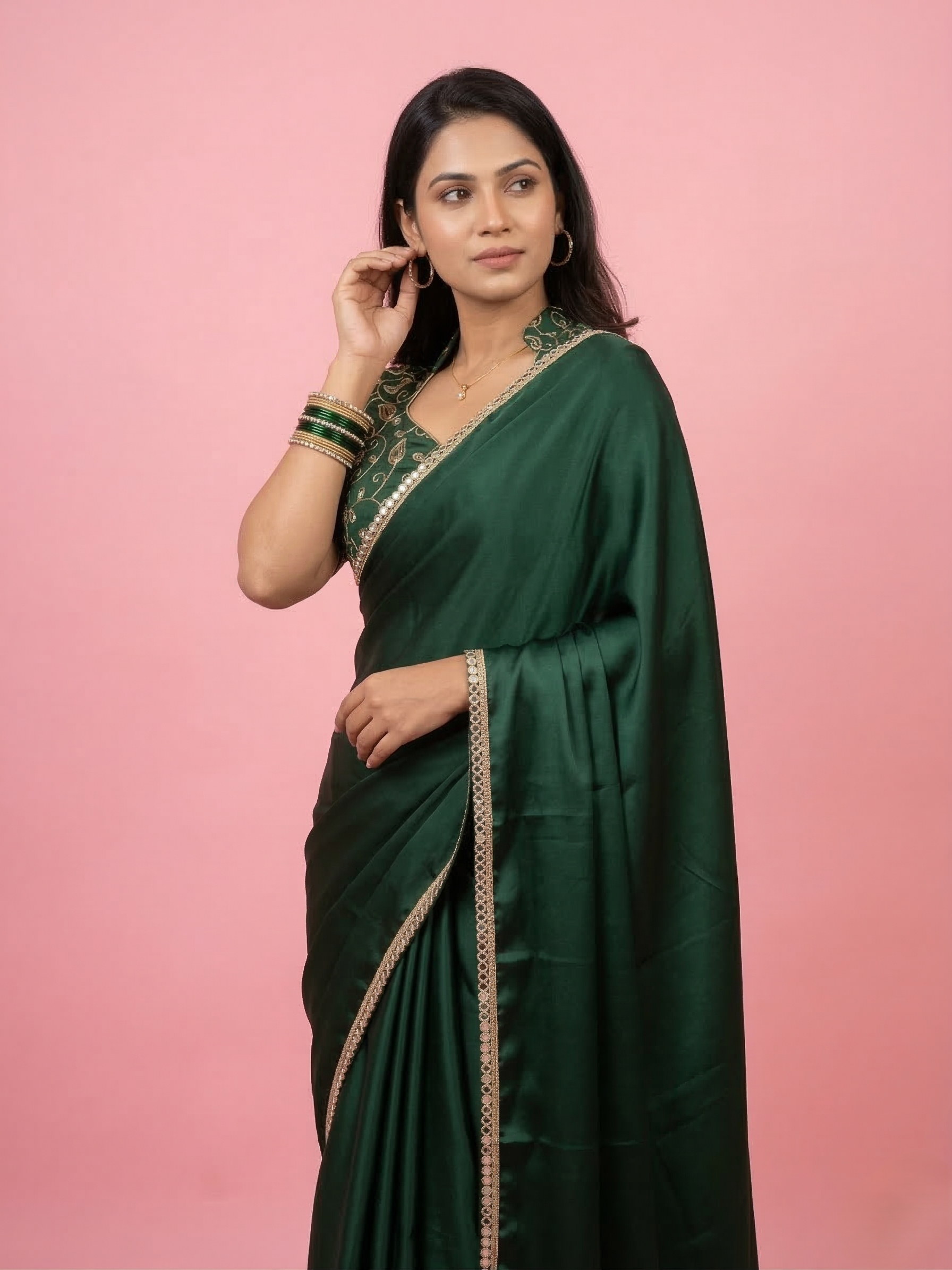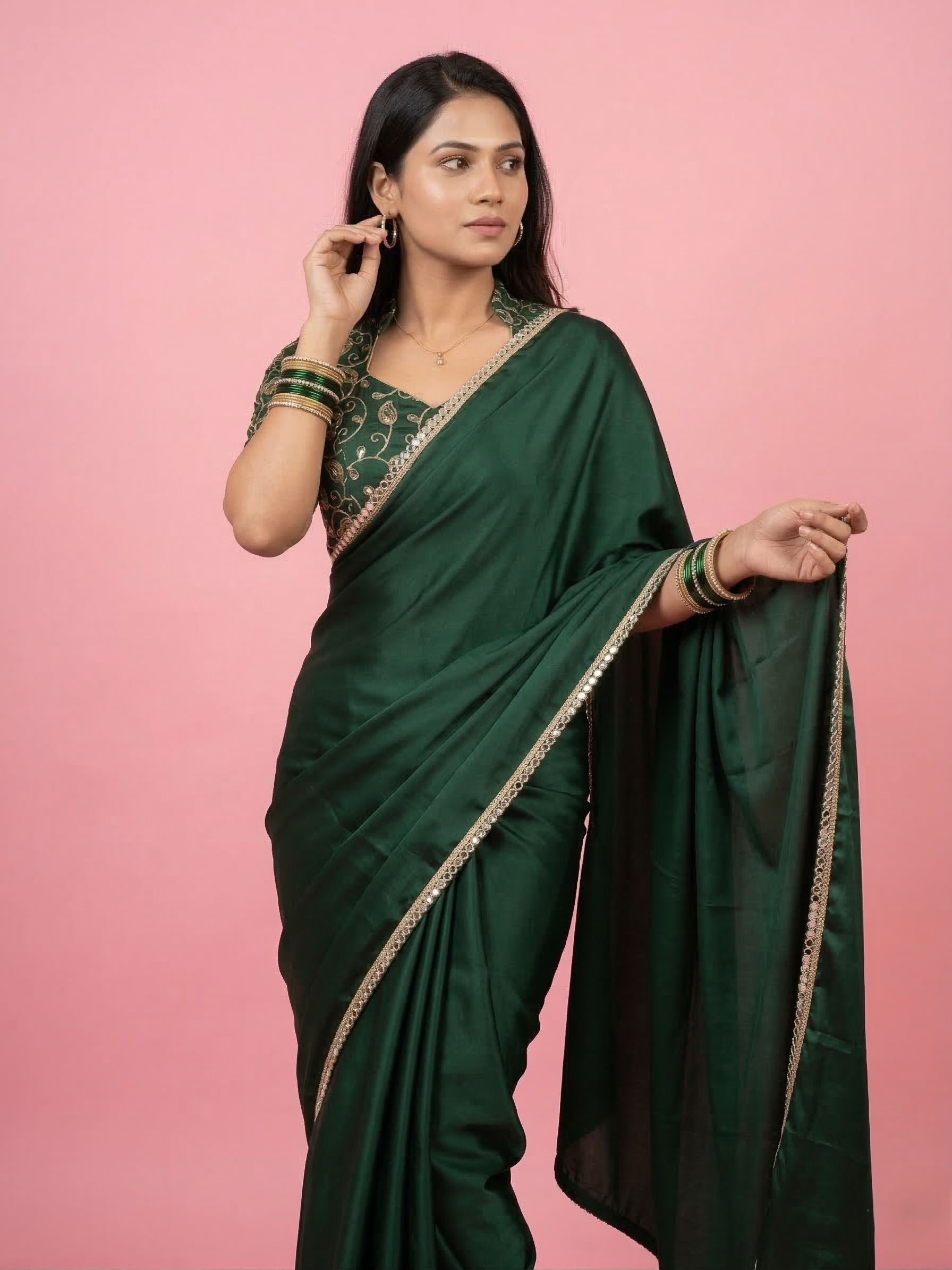 • Beautiful dark green saree crafted from premium art silk fabric