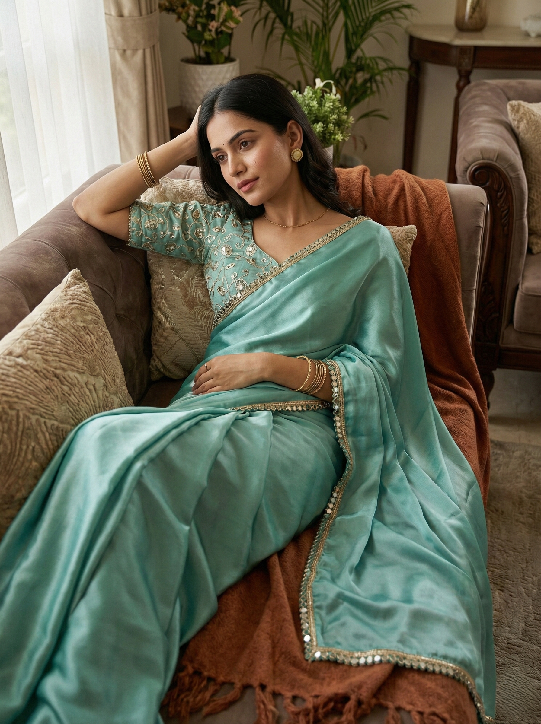• Paired with a beautifully embroidered blouse for a graceful look